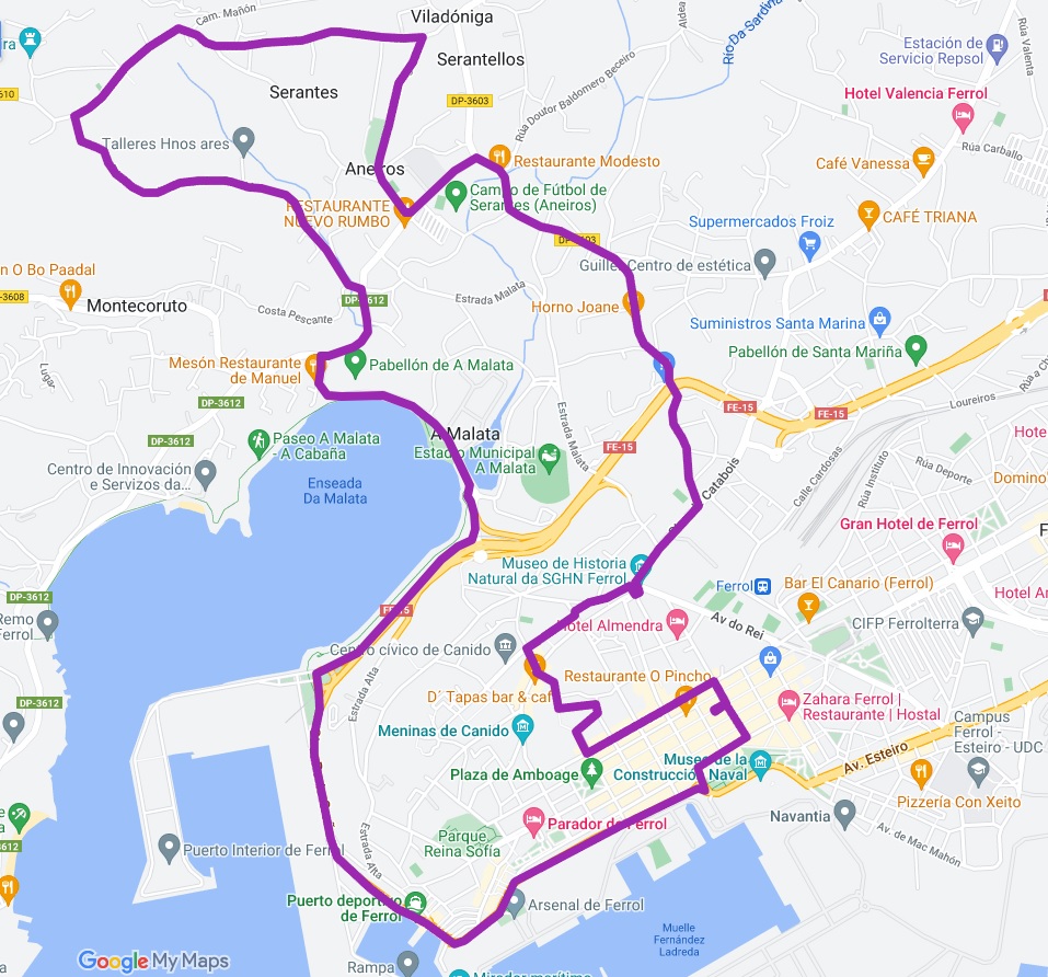 Izda. por la C/ A Malata (bordeando el Estadio Municipal de A Malata) |